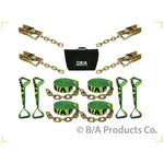 This 2" Hi-Viz 8-point tie-down (18') webbing has a green nylon edge, reflective threading and is high visibility yellow for increased visibility on the roadside! This kit comes with 4 Long Straps with Chain, 4 Ratchets with Chain, 4 Short Straps with Lined Eyes and a convenient storage bag. B/A Products Co. has been creating straps and web slings for the Towing Industry since 1980. We are proud to have helped set the standards across the industry and stand behind all of our products. If you need a custom length or product, we are here to help! It's as good as done.