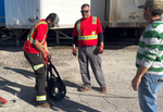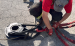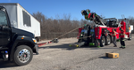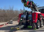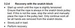 Start up winch until the rope is slightly tensioned. Ensure that the rope is always in the snatch block pulley bed. If this is not the case, stop the winch and manually place the rope in the pulley bed. Only continue work after all hands are removed from the snatch blocks. Slowly pull in the load. Perform Recovery.