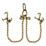 This is a Low-Profile V-Chain with R Hooks, T Hooks, & Mini J Hooks (3' Legs) from B/A Products. The B/A Products Low-Profile V-Chain with R Hooks, T Hooks, & Mini J Hooks is a versatile and durable towing accessory designed for handling vehicles with low ground clearance. Engineered with precision, this V-Chain features a low-profile design to prevent damage to the vehicle's undercarriage during loading, transport, and unloading. It comes equipped with a combination of R Hooks, T Hooks, and Mini J Hooks, providing multiple attachment options to accommodate various towing setups. Crafted from high-strength materials, this V-Chain ensures reliability and durability under heavy loads, making it suitable for professional towing operations, car enthusiasts, and auto transport companies. With its specialized construction and attention to detail, this V-Chain offers safe and secure towing for a wide range of vehicles, including sports cars, luxury vehicles, and exotics.